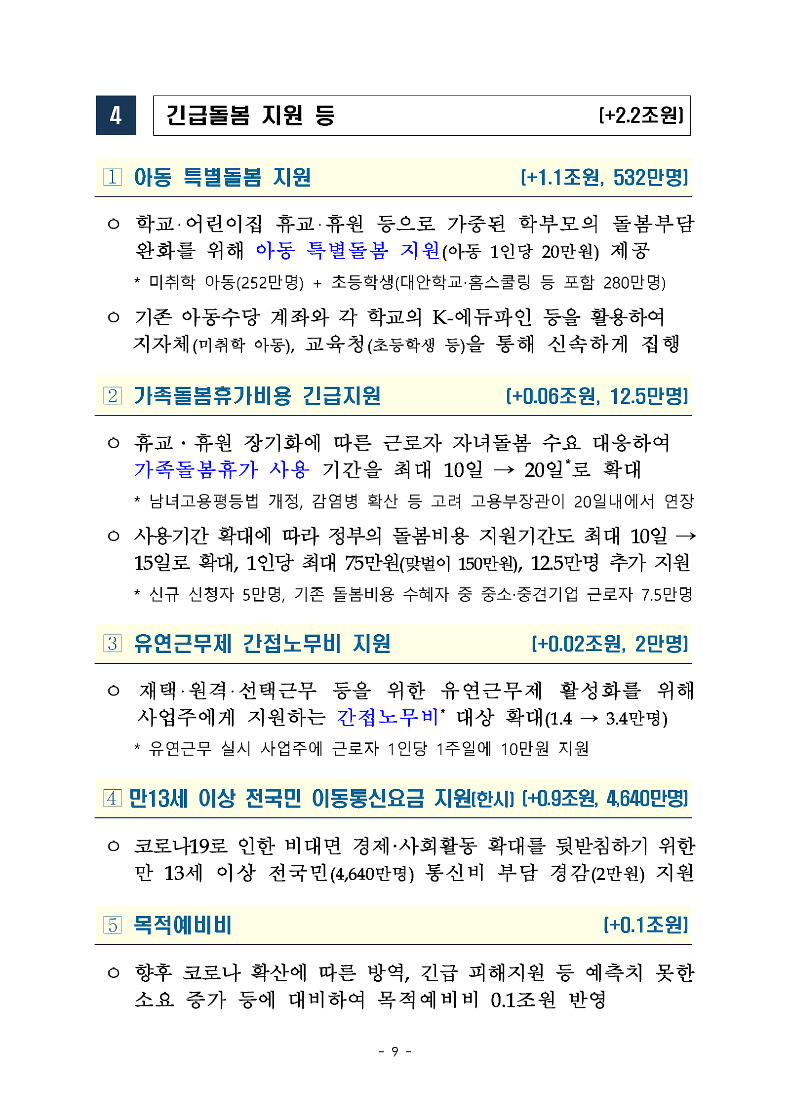 마지막으로 저소득층을 위한 긴급 생계지원 프로그램과 긴급돌봄 지원 프로그램에 대해서 들여다 보면 실직 휴페업 등에 의한 소득감소로 생계가 곤란한 위기가구를 대상으로 긴습 생계자금을 지원한다고 합니다. 한때 긴급복지 지원금을 지원하는 내용에 포스팅을 했었는데요. 혹시 저소득층에 해당하시는 분들에게는 현재까지 지원하는지 한번 알아보시는 것도 나쁘지 않아보입니다.